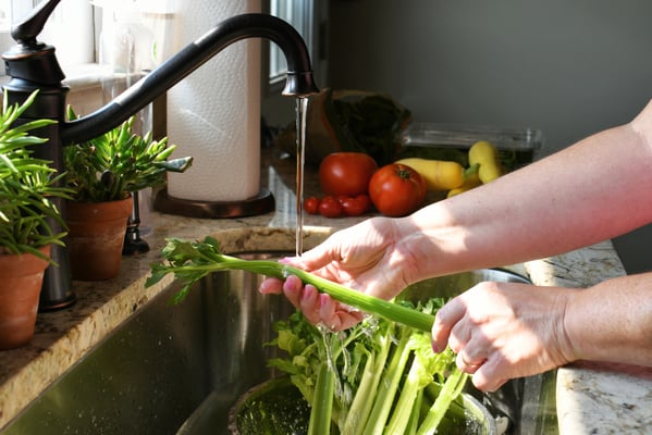 Cleaning up is also super important. After using utensils and cutting boards make sure to thoroughly wash them with hot soapy water. And don’t forget to regularly wash dish towels and wash clothes.